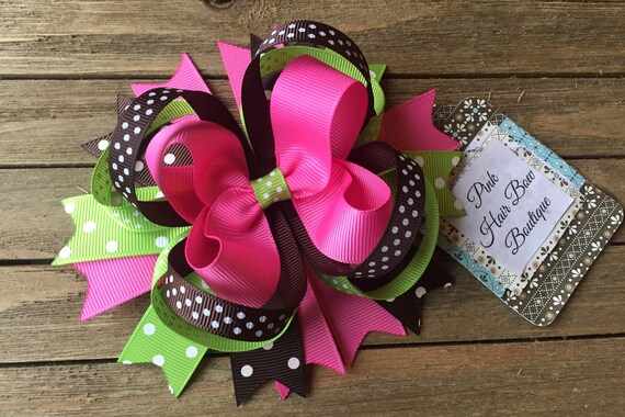 Buy Boutique Big Hot Pink Lime Green Stripes Over The Top Hair Bow Clip Or Headband Online At Beautiful Bows Boutique